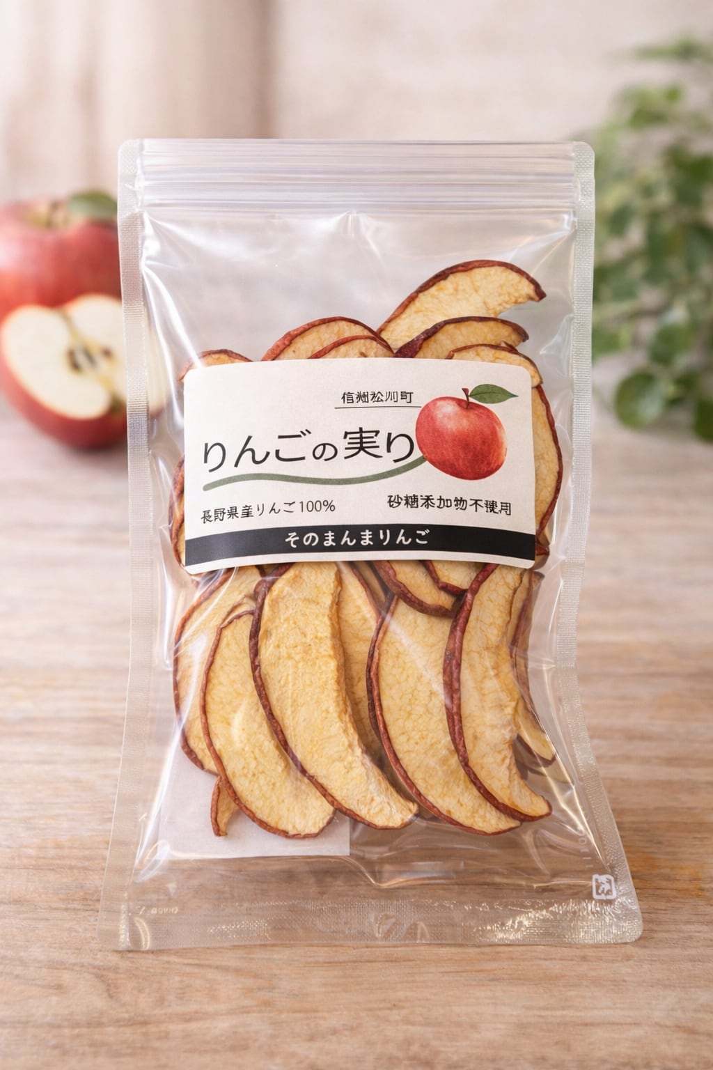 りんごの実りは、厳選されたフレッシュなりんごを使用し、砂糖や保存料を一切使用せずに作り上げた新感覚の自然派スナックです。毎日の生活に手軽に取り入れられる健康的なおやつとして、多忙なあなたを優しくサポートします。自然の甘みや酸味を存分に感じられるその味わいは、まるで完熟のりんごを噛んでいるかのよう。手間を惜しまない丁寧な製法で、りんごの風味を封じ込めました。また、パッケージデザインはシンプルながら洗練され、毎日の生活シーンに溶け込む美しいビジュアルを演出します。
